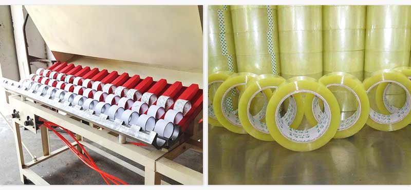1,從重繞軸上取下膠帶,同時(shí)將紙芯放在軸上;